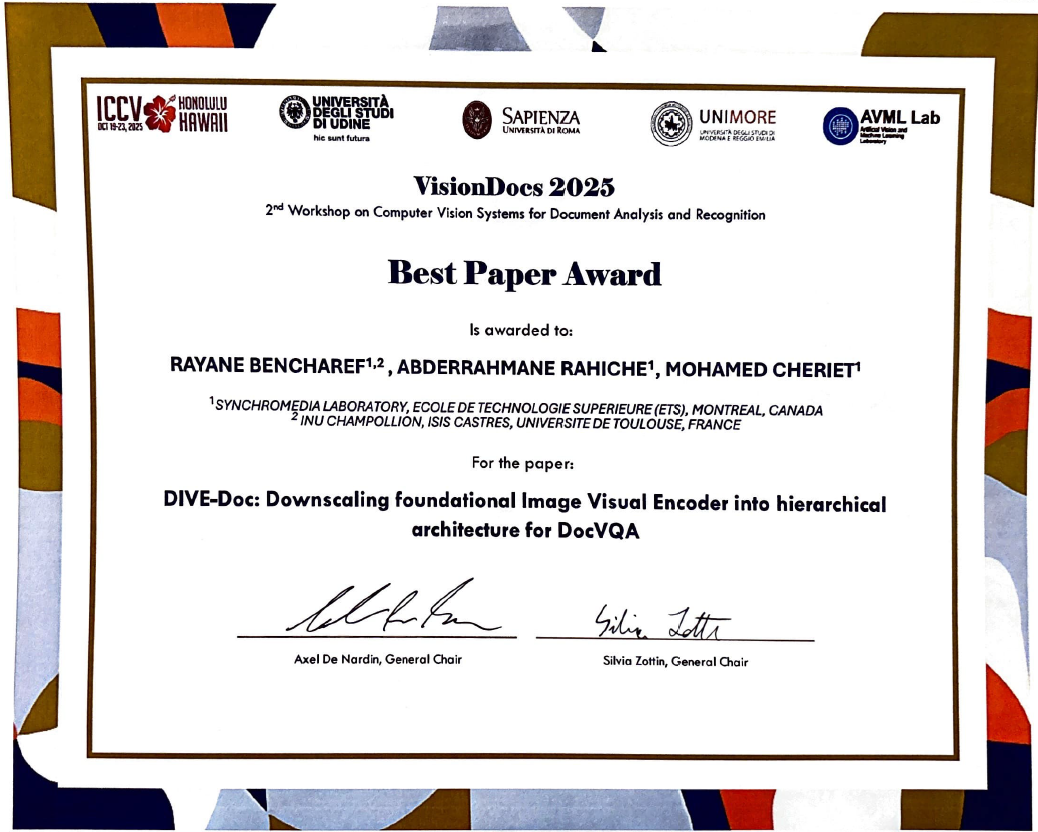 Congratulations to Rayane and Kilian for their outstanding work and for representing Synchromedia with excellence at ICCV 2025.